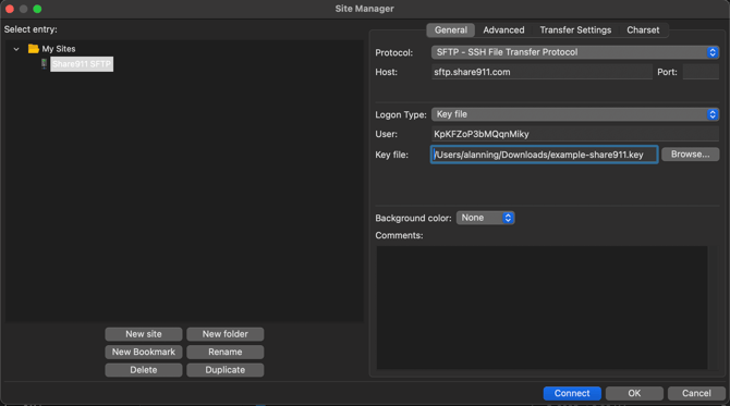 Share911 / Share999 uses RSA key files rather than passwords to authenticate with our SFTP server.