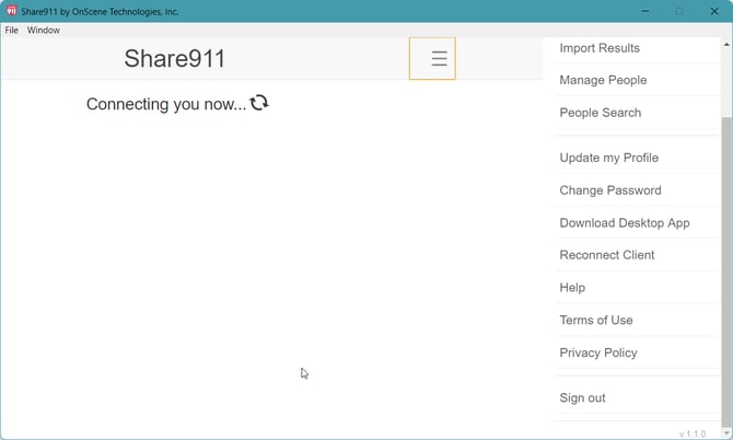 If you experience an issue where the Windows desktop client does not connect, please uninstall the Share911 / Share999 app and install it again using the MSI version.